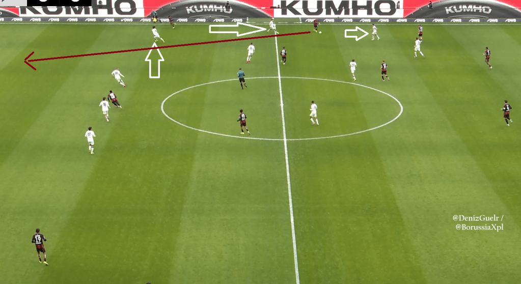 - Mit LIV Koch aus der Dreierkette den linken Flügel mit drei Spielern (Brown, Bahoya, Koch) überladen.